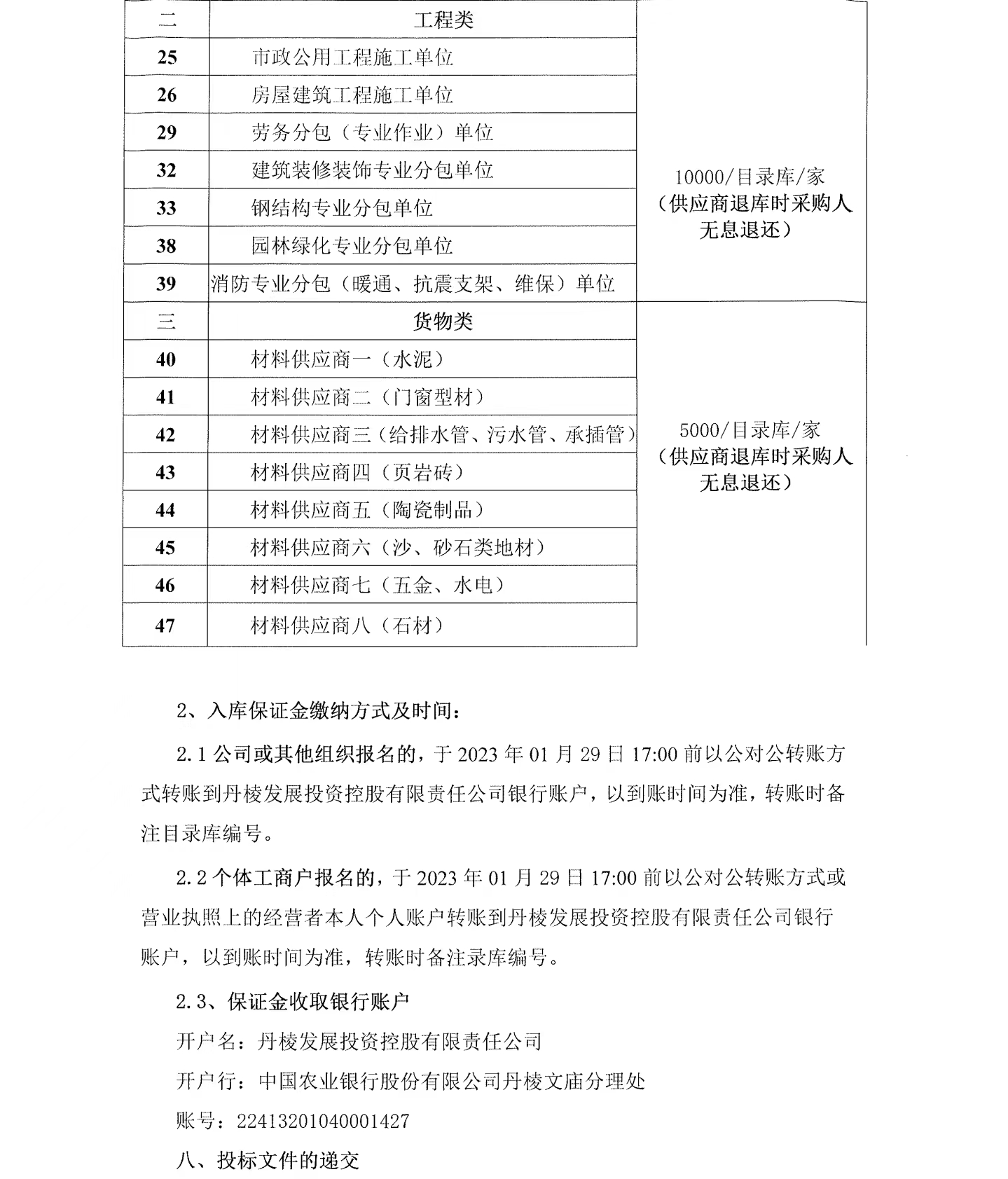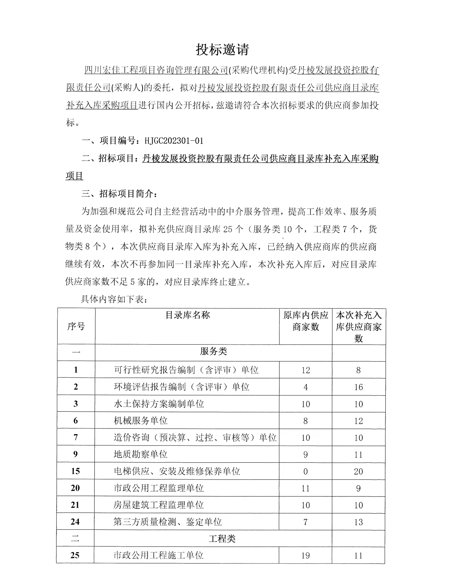丹棱發(fā)展投資控股有限責(zé)任公司供應(yīng)商目錄庫補(bǔ)充入庫采購項(xiàng)目投標(biāo)邀請公告